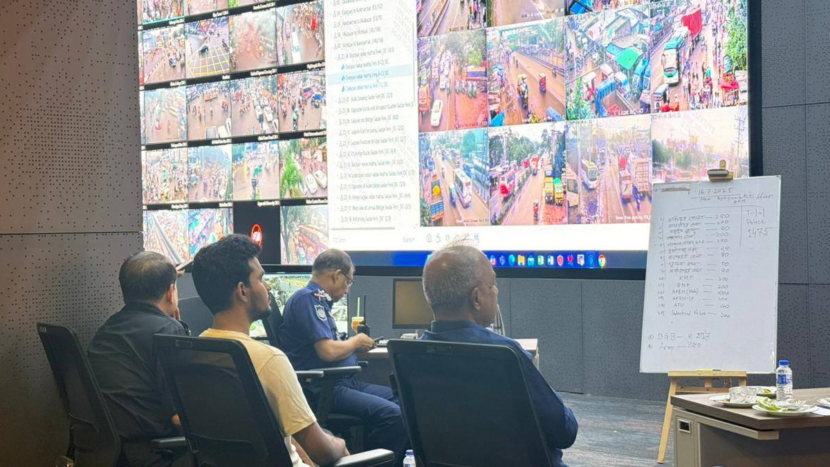 পোস্টে আসিফ মাহমুদ ৩টি ছবি জুড়ে দেন। তাতে দেখা যায়, বড় একটি মনিটরে গোপালগঞ্জ জেলার বিভিন্ন স্থানের সিসিটিভি ফুটেজ চলছে। মনিটরের সামনে বসে দুই উপদেষ্টা ও আইজিপি পরিস্থিতি পর্যবেক্ষণ করছেন।