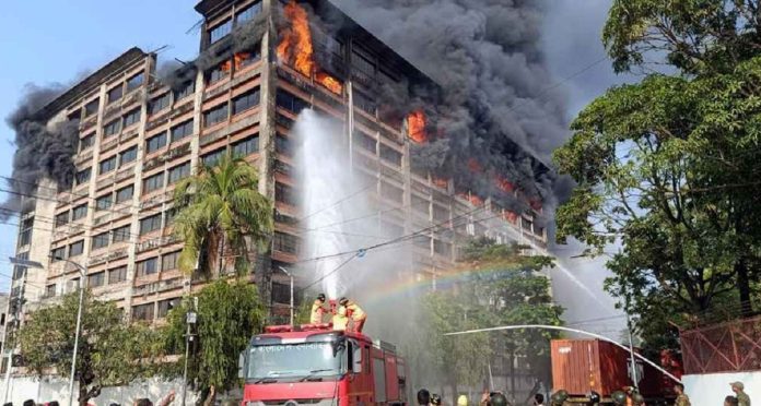 ফায়ার সার্ভিস সদর দপ্তরের মিডিয়া সেলের কর্মকর্তা তালহা বিন জসিম বলেন, সাততলা ভবনের ৫ম, ৬ষ্ঠ ও ৭ম তলায় আগুন লেগেছে।