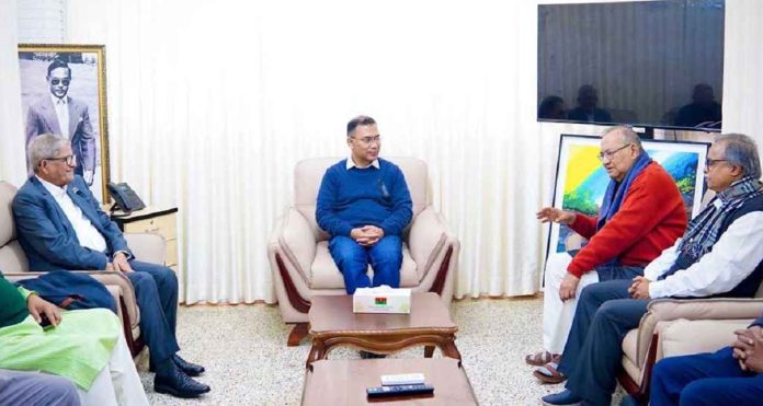 তারেক রহমানের সঙ্গে বাম জোটের শীর্ষ নেতাদের সাক্ষাৎ