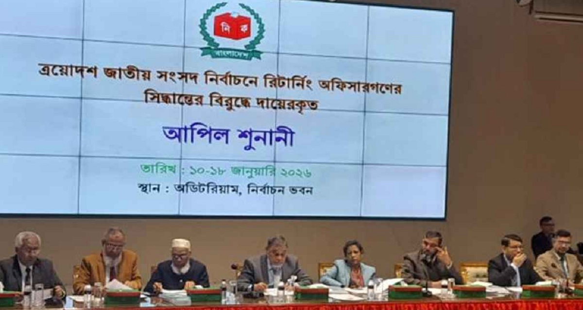 আসন্ন ত্রয়োদশ জাতীয় সংসদ নির্বাচনে রিটার্নিং কর্মকর্তাদের দেওয়া সিদ্ধান্তের বিরুদ্ধে দায়ের করা আপিল আবেদনের শুনানি চলছে।
